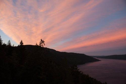 A panoramic view of Saanch Inlet is available in all guest rooms at the Malahat Moon Water Lodge. Flat-screen cable TV and a fireplace feature in the living room. Select rooms provide a full kitchen and a dining table.