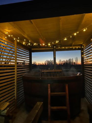 This holiday home features a hot tub and a spa bath. Boasting a private entrance, this air-conditioned holiday home features 1 living room, 2 separate bedrooms and 1 bathroom with a shower and a hairdryer. In the kitchen, guests will find a refrigerator, kitchenware, an oven and a microwave. Featuring a terrace with garden views, this holiday home also features a seating area and a flat-screen TV with streaming services. The unit has 5 beds.