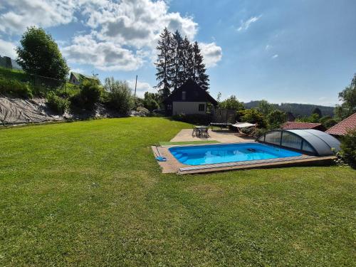 Featuring a garden, pool with a view and mountain views, Černý důl 18 is located in Cerny Dul. This property offers access to a terrace, tennis at the tennis court, free private parking and free WiFi. The chalet has an outdoor fireplace and a sauna.