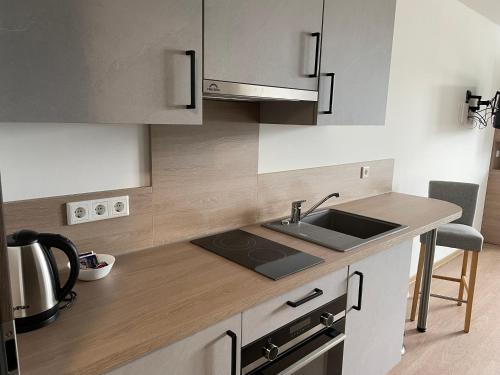 The aparthotel features 1 bedroom, a flat-screen TV with satellite channels, a fully equipped kitchenette with an oven and a microwave, and 1 bathroom with a walk-in shower. Towels and bed linen are provided in the aparthotel. This aparthotel is non-smoking and soundproof.