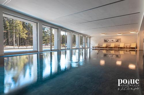 The apartment also offers an indoor pool and a solarium for guests to relax in.