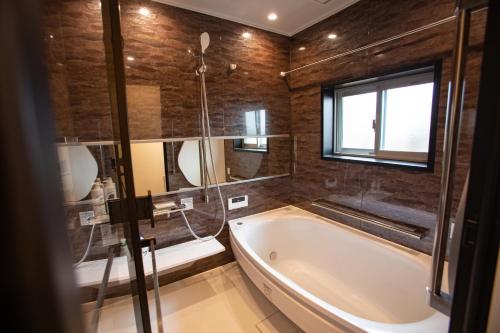 This air-conditioned holiday home consists of 1 living room, 3 separate bedrooms and 2 bathrooms with a bath. Guests can make meals in the kitchen that is equipped with a stovetop, a refrigerator, a dishwasher and kitchenware. The holiday home provides a flat-screen TV with streaming services, a washing machine, tatami, a dining area as well as city views. The unit offers 9 beds.