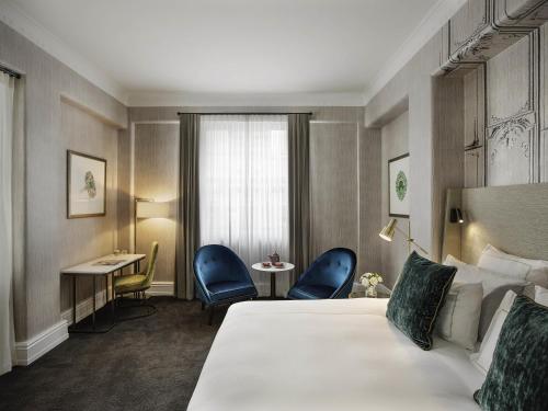 These refurbished and elegantly appointed rooms are inspired by the early 1900's Art Deco design style. The 26sqm (approximately) rooms boast a 48-inch Samsung Smart TV and Bose speaker. Free high speed WiFi access, T2 tea ware and a selection of organic teas are also included as well as a Nespresso coffee machine with a range of coffee pod capsules. Guests can enjoy the complimentary bathroom toiletries from Floris London. A seating area with a working desk may be included, subject to availability. Some rooms have Super King beds which can be split into 2 single beds.