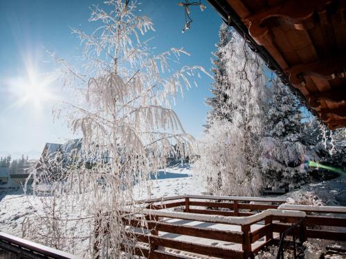 Guests can relax in the garden with barbecuing facilities, and children can enjoy the playground featuring a trampoline. Ski storage is also available.