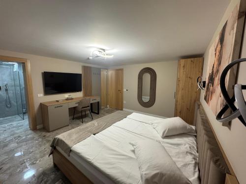 The double room features a tiled floor, heating, as well as a private bathroom boasting a shower and a hairdryer. The air-conditioned double room offers a flat-screen TV with streaming services, soundproof walls, a minibar, a wardrobe as well as mountain views. The unit has 1 bed.