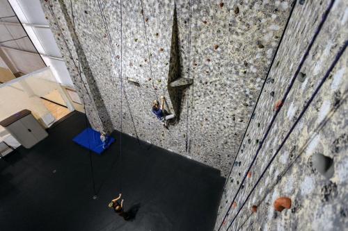The state-of-the-art fitness center offers a gym, 35-foot climbing wall and lap pool. There are indoor and outdoor tennis courts as well as basketball courts. Tesla charging stations are available onsite.